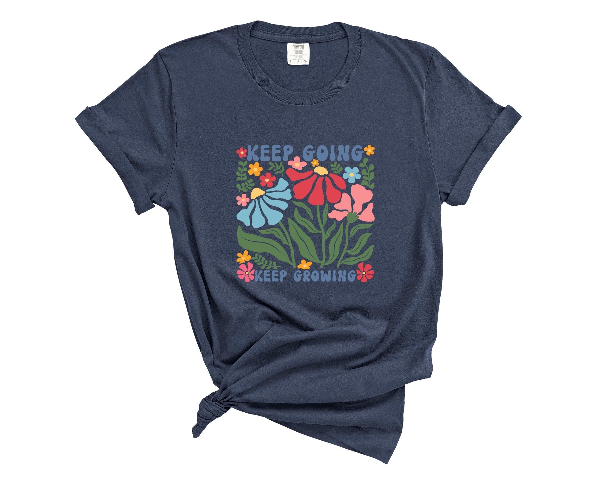 Comfort Colors Floral T-Shirt: Keep Going Keep Growing, Positivity Shirt
