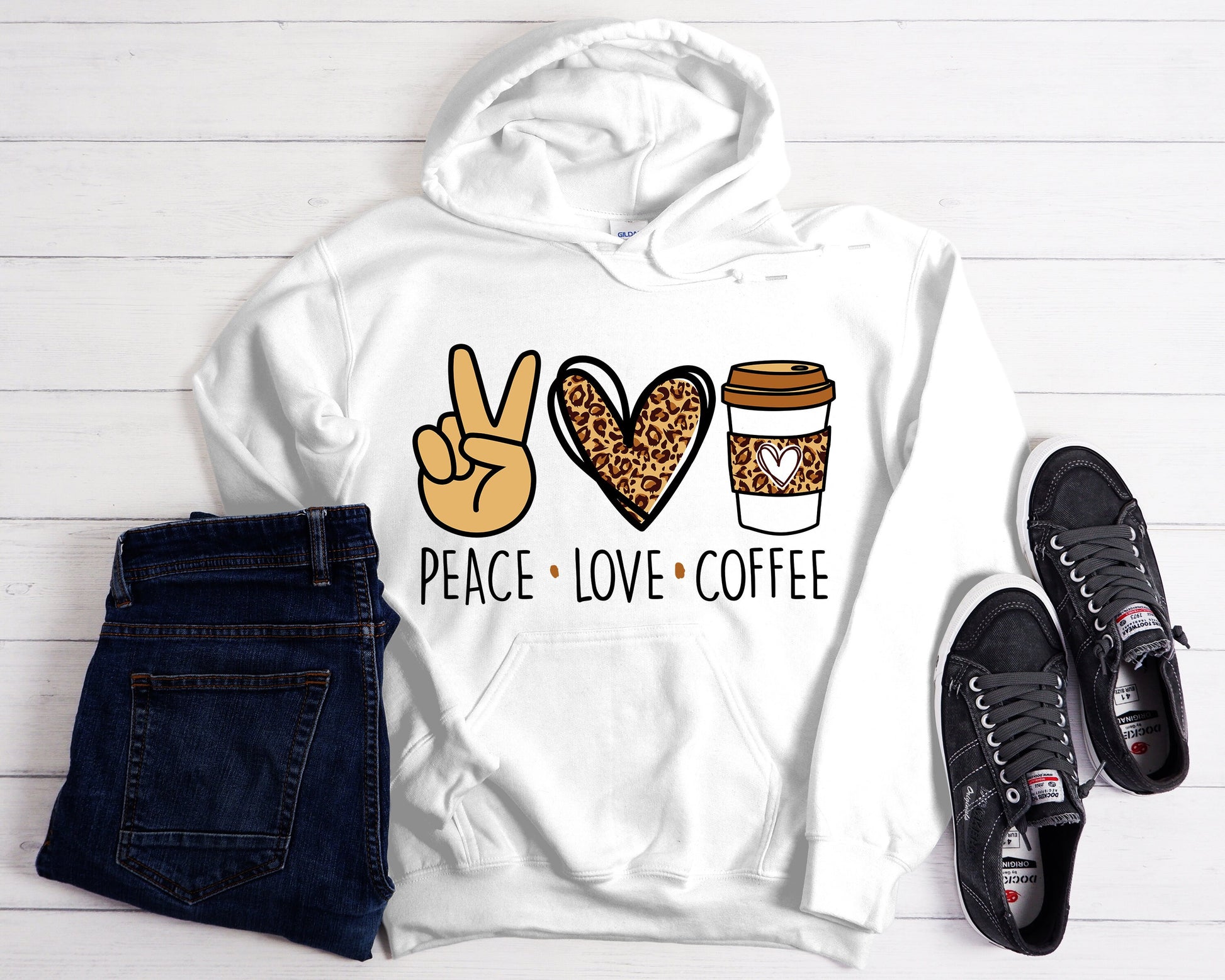Peace Love Coffee Hoodie - Coffee Lover Gift