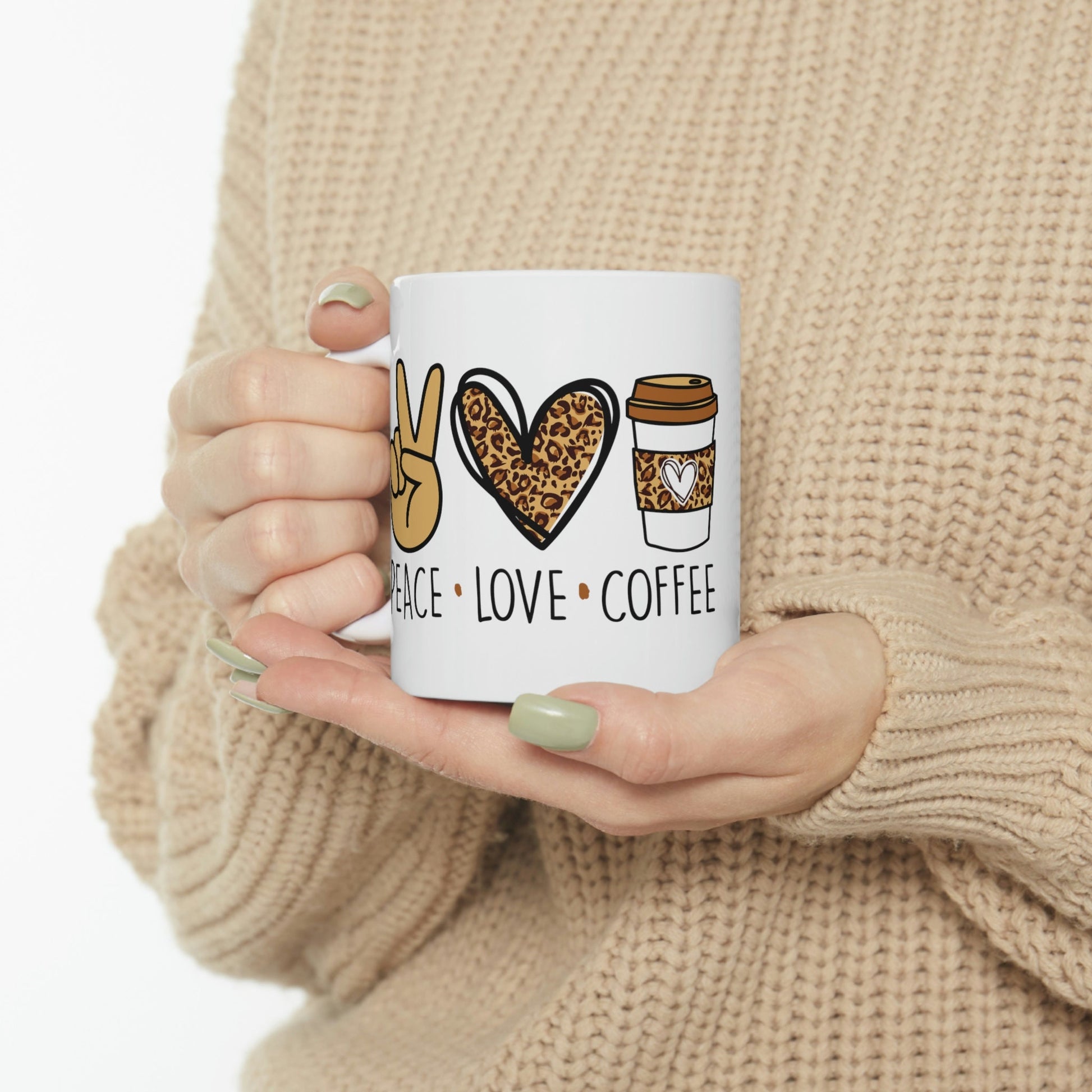 Peace Love Coffee Mug: Leopard Heart Ceramic Mug